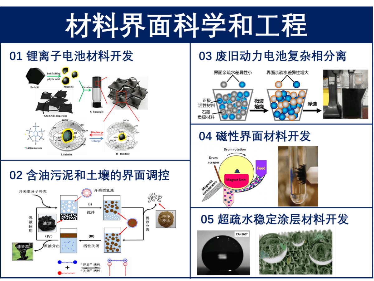 深圳市材料界面科學(xué)和工程應(yīng)用重點(diǎn)實(shí)驗(yàn)室旨在以材料界面科學(xué)為基石,結(jié)合先進(jìn)材料、表面功能化、界面?zhèn)髻|(zhì)、浸潤(rùn)控制和環(huán)境工程等技術(shù)來(lái)設(shè)計(jì)和開(kāi)發(fā)新型界面功能材料,建立復(fù)雜體系中的表界面行為控制手段,為解決深圳市新能源和傳統(tǒng)能源快速發(fā)展面臨的環(huán)境和資源壓力提供保障。實(shí)驗(yàn)室研究領(lǐng)域包含廢舊動(dòng)力電池復(fù)雜相分離和資源化再利用、界面行為控制修復(fù)含油污泥和土壤、高性能鋰離子電池電極材料制備、高穩(wěn)定超疏水空泡涂層技術(shù)和響應(yīng)性磁性界面材料等五大研究方向。實(shí)驗(yàn)室將與其他院校開(kāi)展廣泛深入的合作,深化合作交流機(jī)制,逐步將本實(shí)驗(yàn)室建設(shè)成為國(guó)內(nèi)一流、國(guó)際先進(jìn)的創(chuàng)新型界面科學(xué)與工程應(yīng)用實(shí)驗(yàn)室,為驅(qū)動(dòng)深圳市產(chǎn)業(yè)可持續(xù)發(fā)展做出重要的貢獻(xiàn)。實(shí)驗(yàn)室由深圳市科創(chuàng)委支持,南科大徐政和院士擔(dān)任實(shí)驗(yàn)室主任。