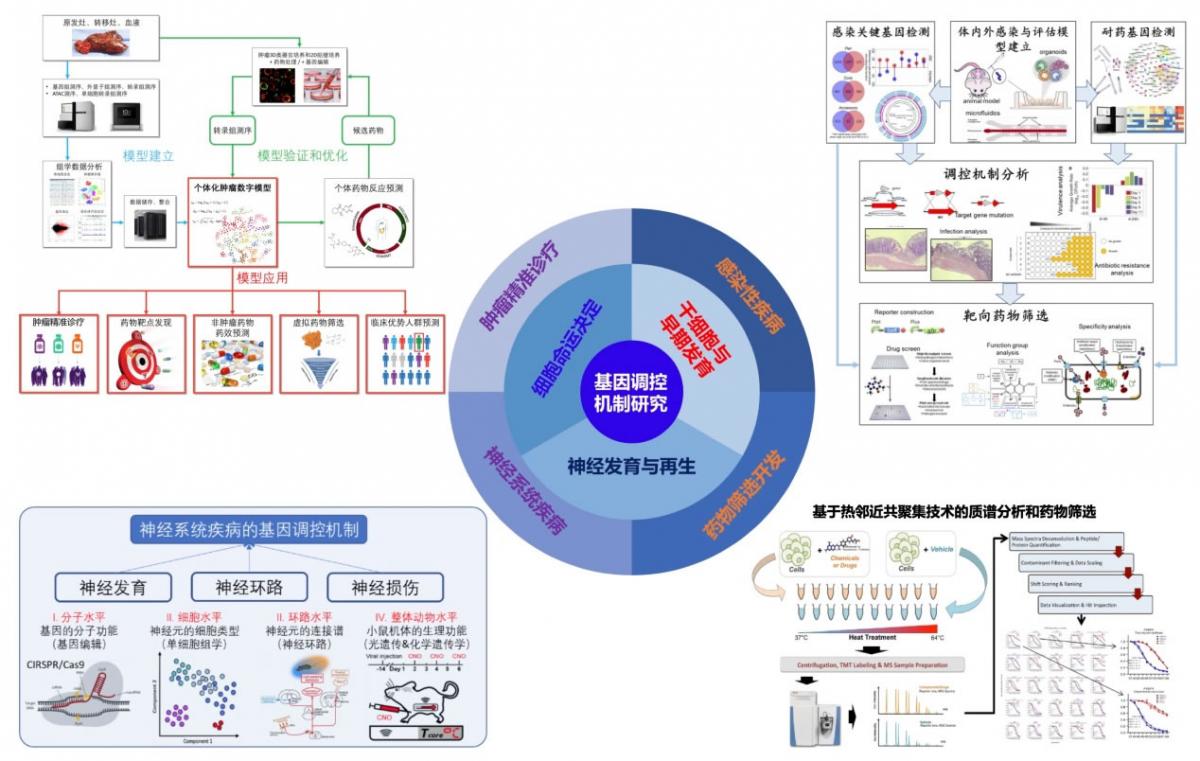 實(shí)驗(yàn)室致力于開(kāi)發(fā)、利用并整合最新系統(tǒng)生物學(xué)、基因組學(xué)、單細(xì)胞組學(xué)等工具,對(duì)基因調(diào)控機(jī)制進(jìn)行多層面和多維度解析,聚焦干細(xì)胞發(fā)育和再生醫(yī)學(xué)、惡性腫瘤發(fā)生發(fā)展、神經(jīng)系統(tǒng)疾病、感染性疾病、新藥研發(fā)等生命健康重大科學(xué)問(wèn)題,探尋針對(duì)以上復(fù)雜疾病的新型精準(zhǔn)診療方案。