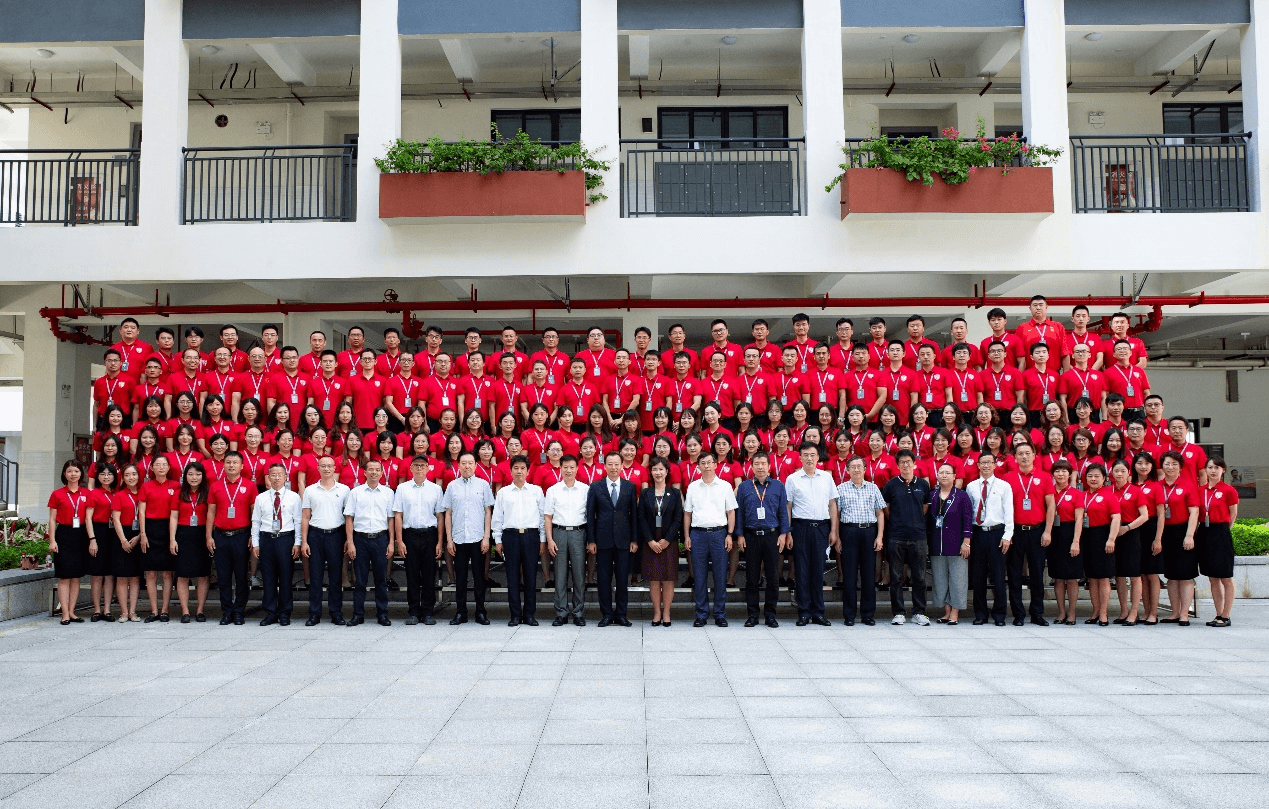 南方科技大學(xué)黨委書(shū)記、講席教授李鳳亮(一排左十四)與南科大附中全體教職工合影